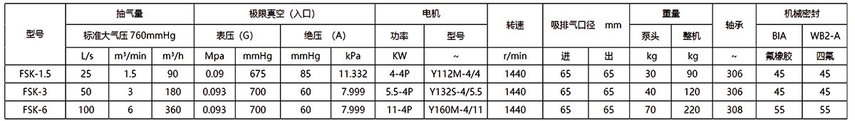 FSK系列耐腐蚀香蕉色视频在线观看适应于90~360m³/h的低抽气量区间,极限真空度较低,可增加电机功率作为压缩机使用。